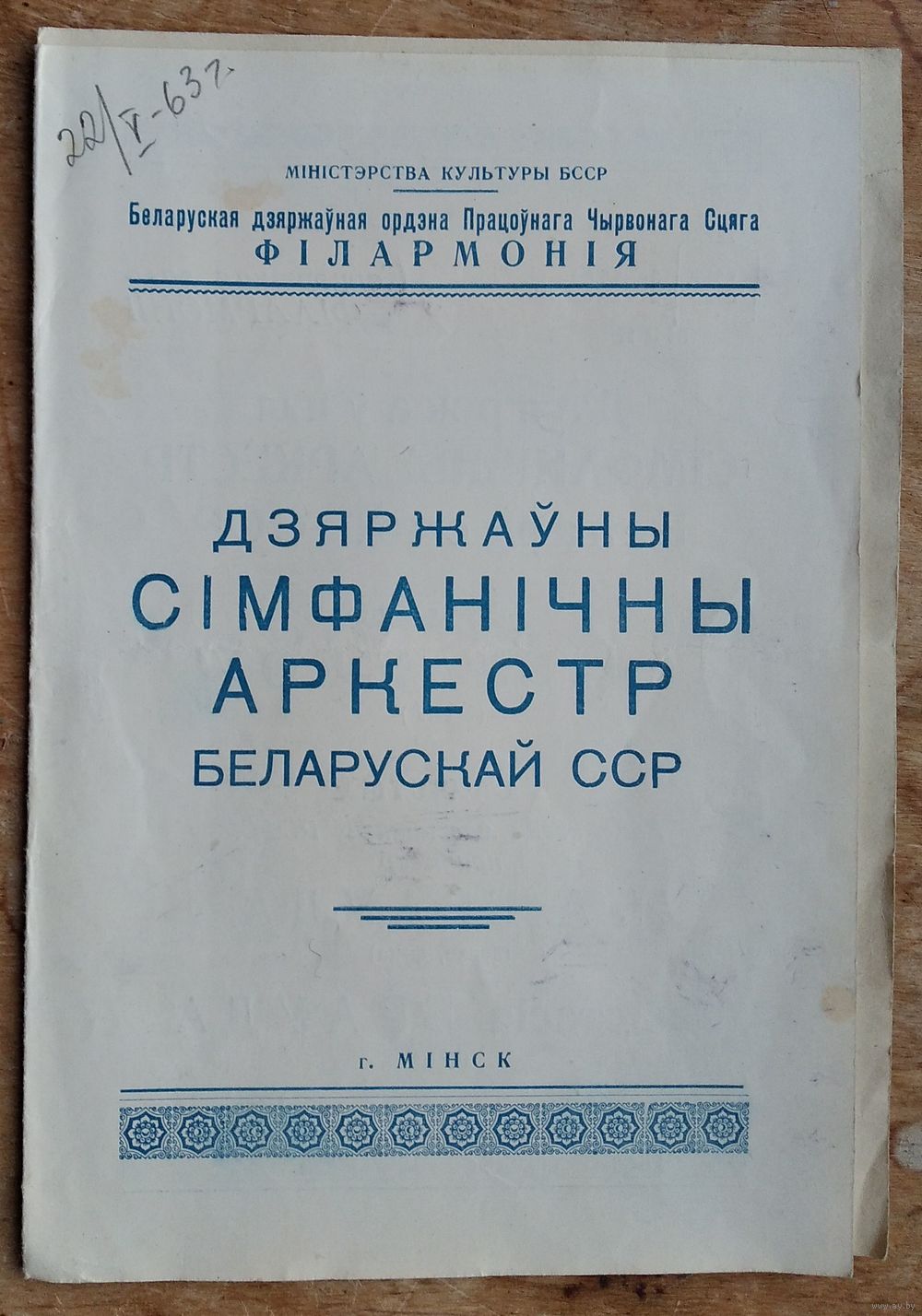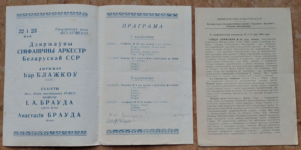 Программа канцерта. Дзяржаўны сімфанічны аркестр БССР. Беларуская філармонія. 1963 г.