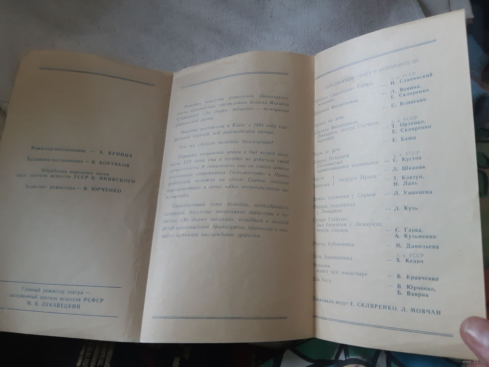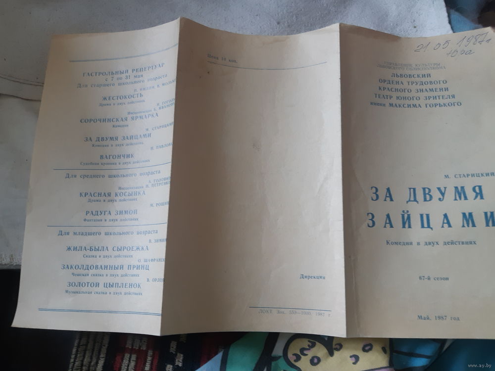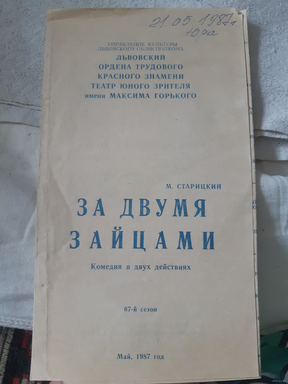 Программа Львовский театр Комедия За двумя зайцами 1987 год