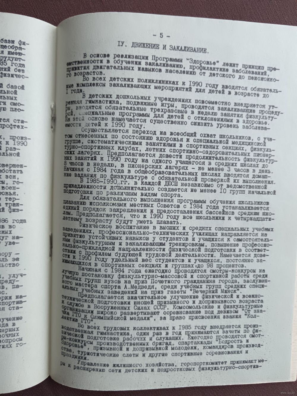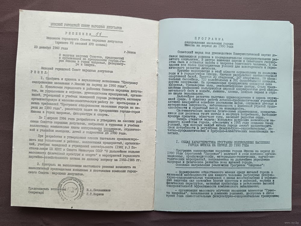 Программа оздоровления населения города Минска на период до 1990 года, одобрена в 1983 году, тираж 600 экз. (3757-пр-5)