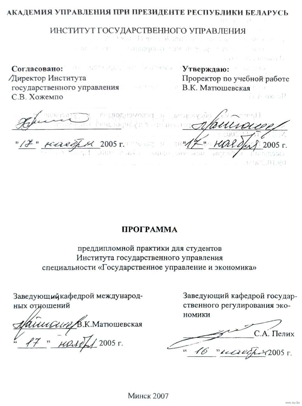 Программы практик "Института государственного управления" специальности "Государственное управление и экономика":