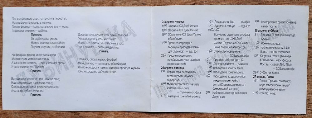 Программа праздника "23-е Дни физика" 1997 г. Минск. БГУ.