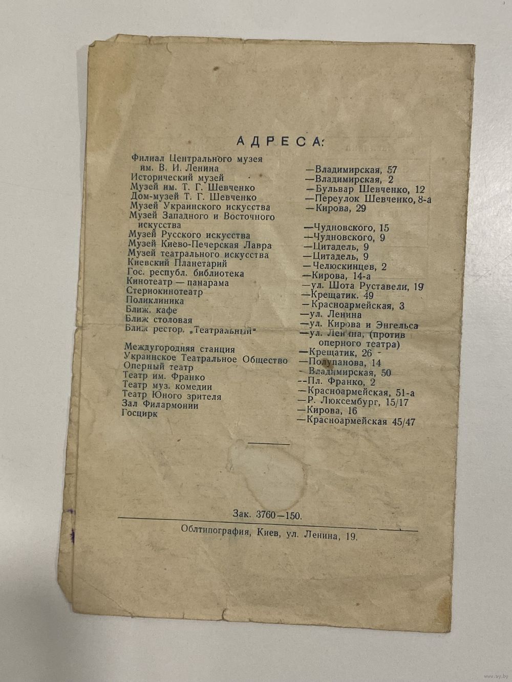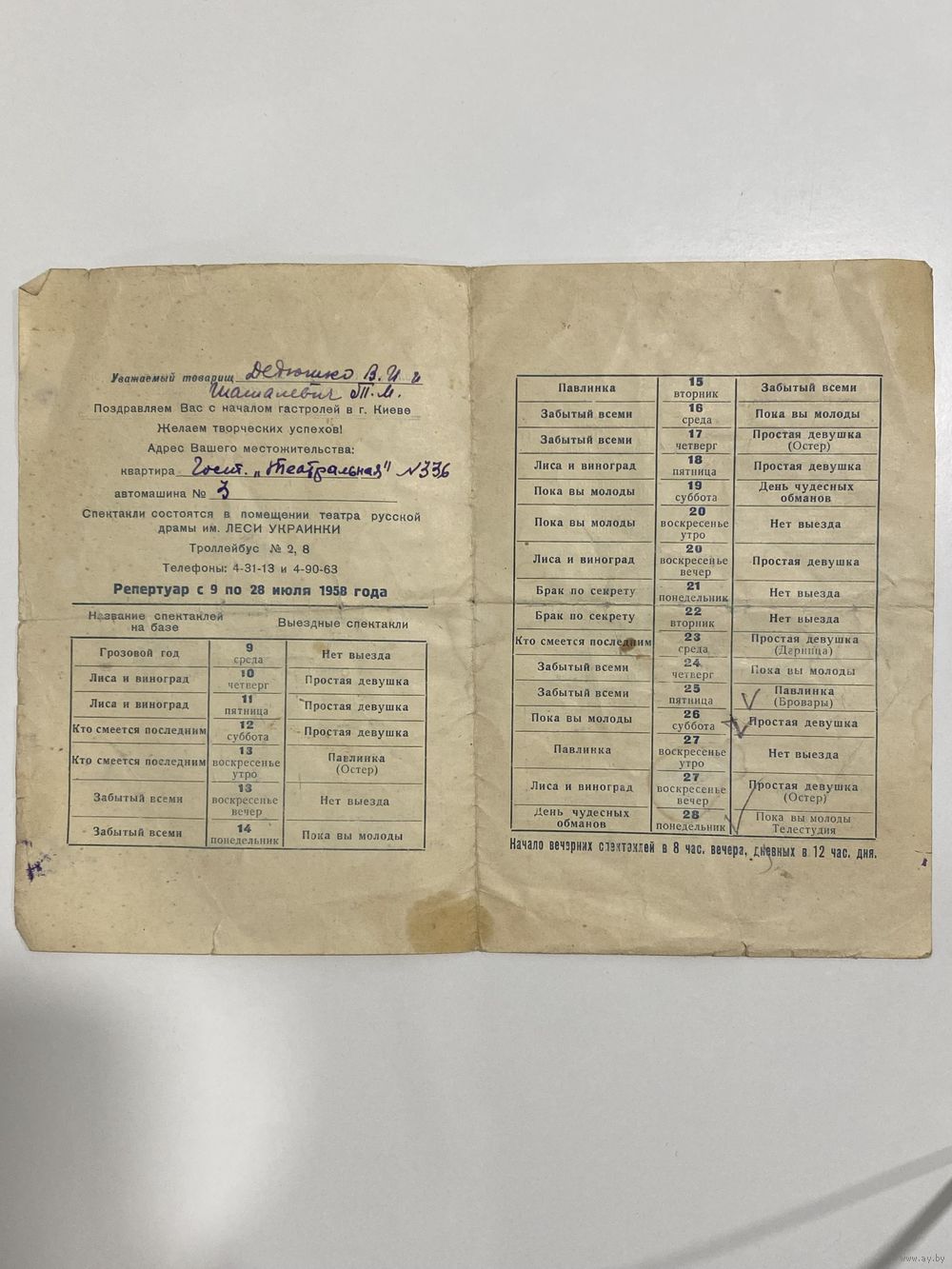 Программа театра Янки Купалы. 1958 год. Приглашение. Програмка.