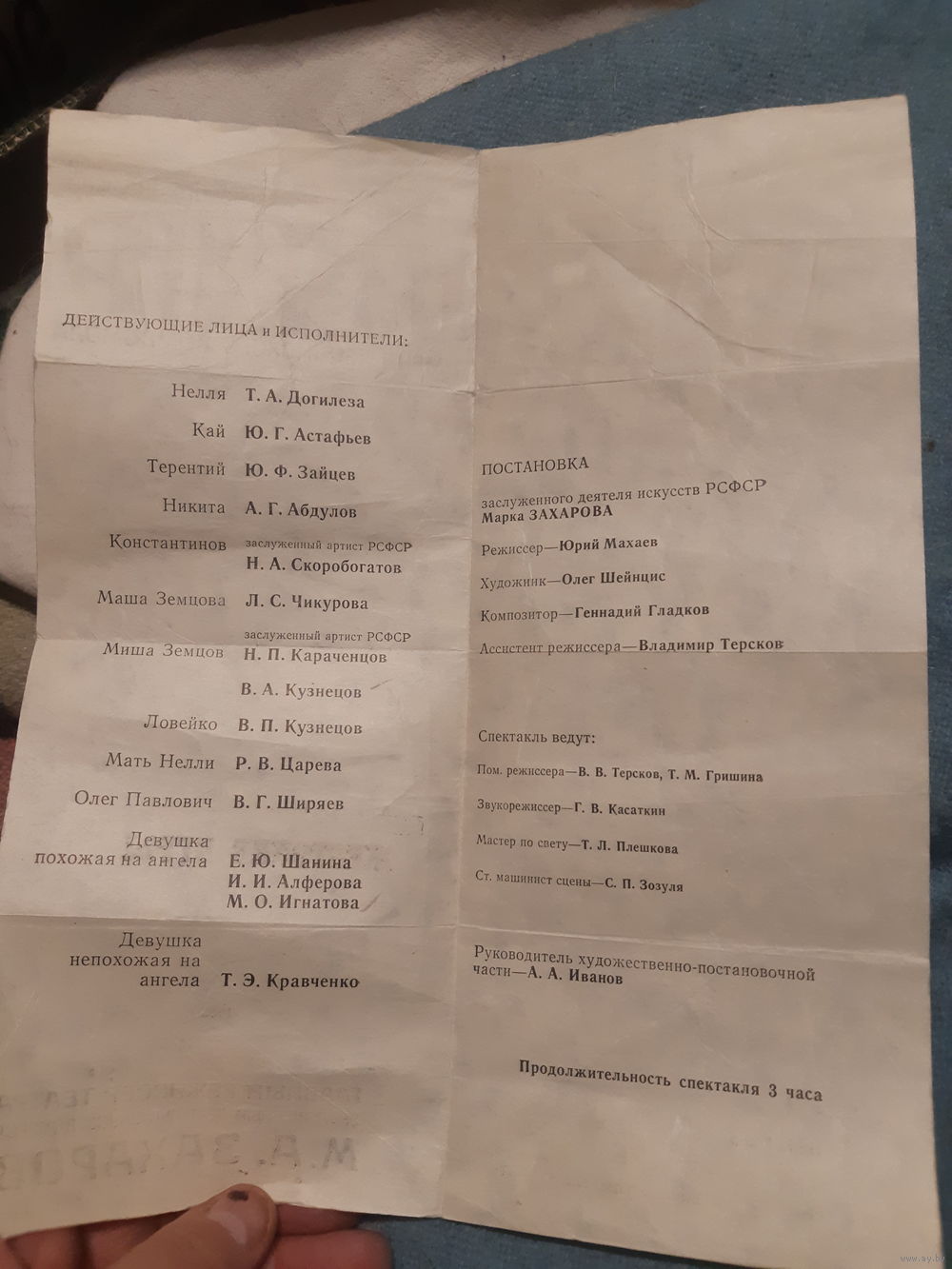 Программа театральная Ленком, Марк Захаров, автографы артистов