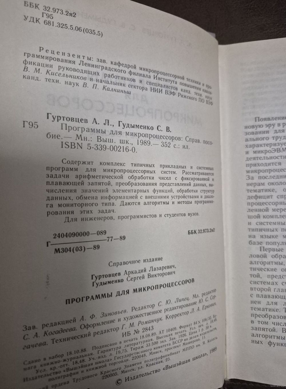 1. Программы для микропроцессоров. Справочное пособие. Гудыменко С. В., Гуртовцев А. Л., Высшая школа, 1989, 325 с.