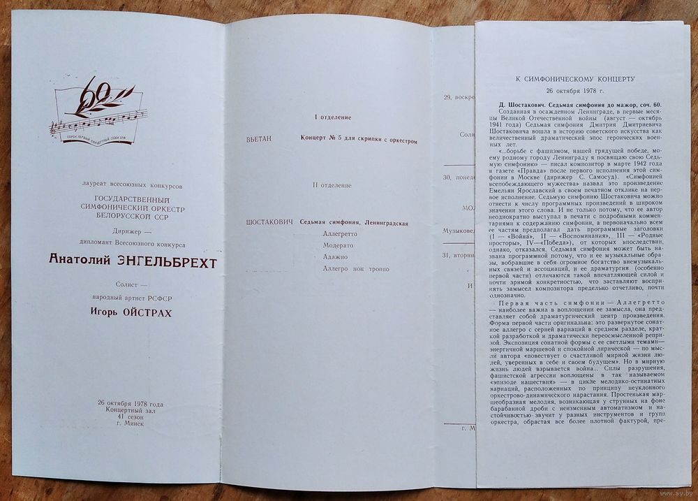 Программы концерта Игоря Ойстраха в Белорусской Государственной Филармонии. Минск. 1978 г.