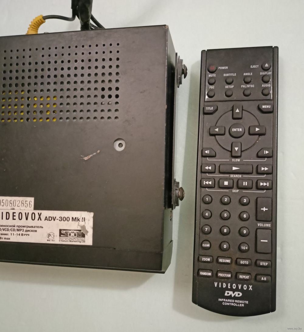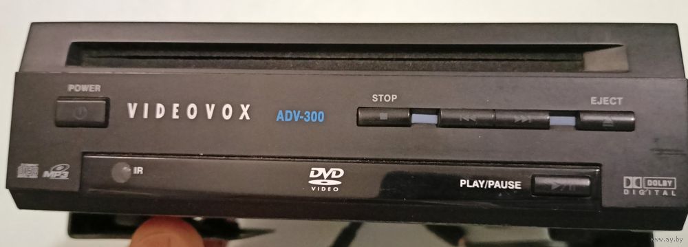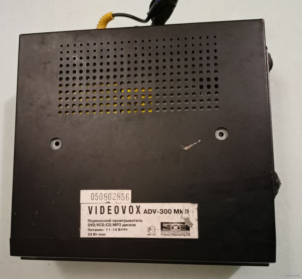 Переностной проигрыватель DVD/VCD/CD/MP3 дисков тип ADV-300Mk LL в комплекте с пультом управления использовался в автомобиле. Питается от 11-14 Вольт. Имеет цифровые выходы AUDIO и VIDEO.