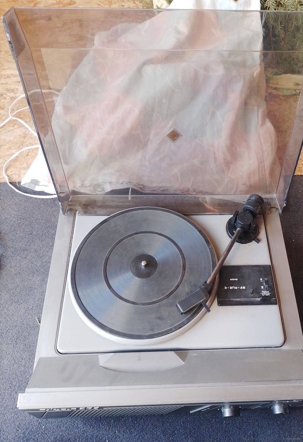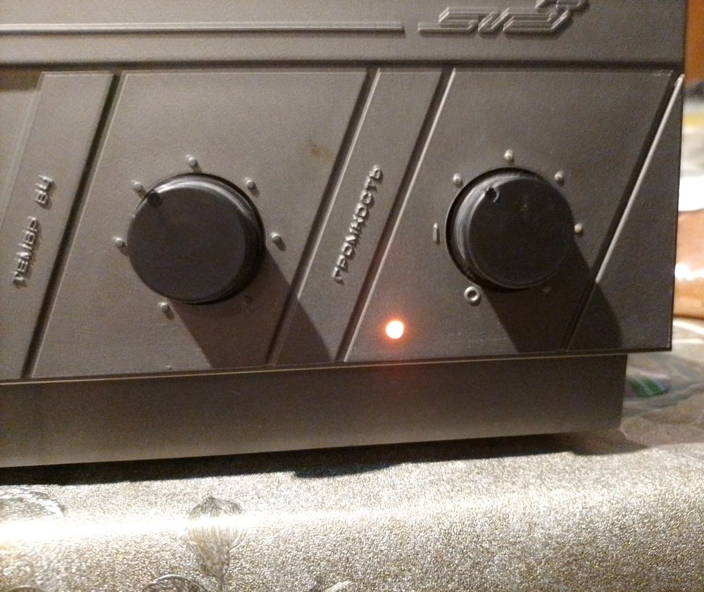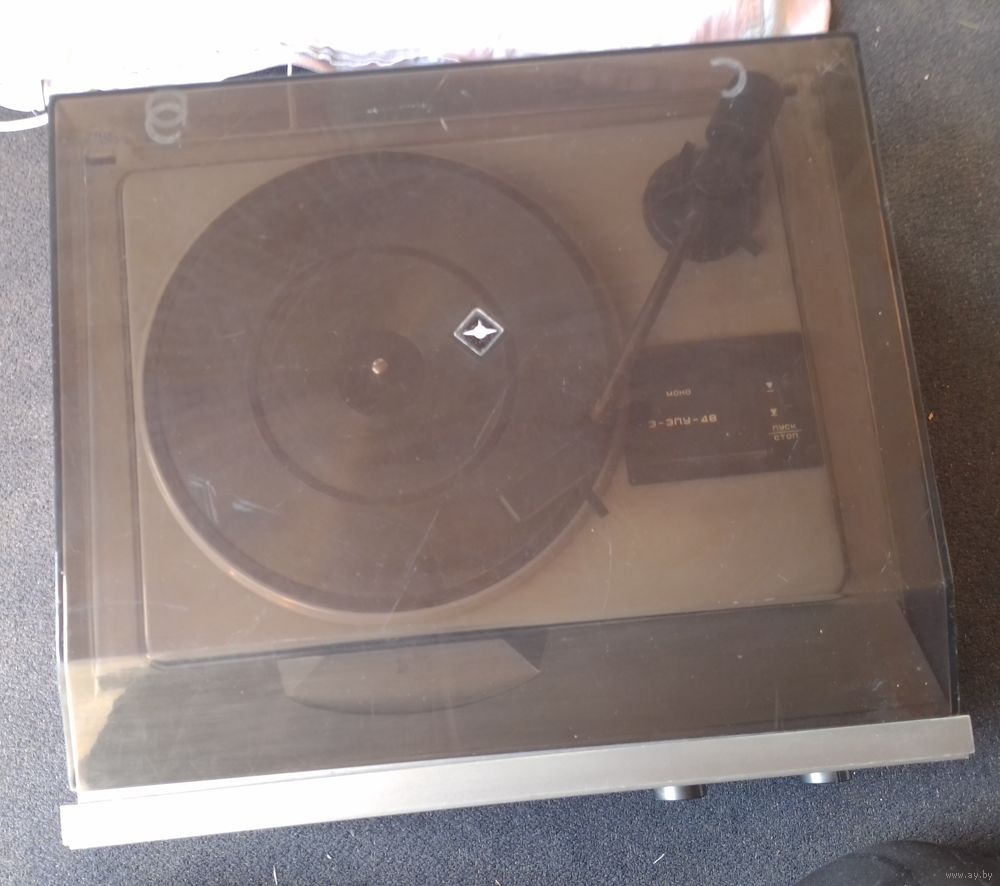 Колонка живая. Однако при опускании иглы на пластинку звука нет. Поэтому остальная работоспособность не известна . Не вскрывался. Вес 5 кг