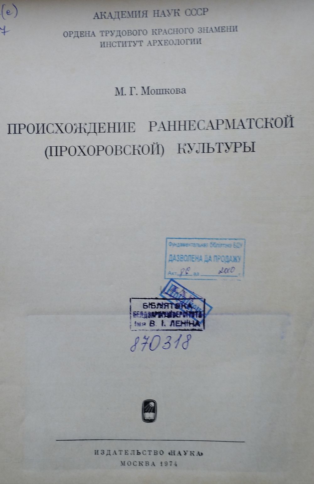 Большой энциклопедический формат. Тираж 2000 экз. Книга рассказывает о сложении культуры ранних сарматов IV-II вв. до н. э., распространенной в степях между Доном и Уралом, выясняет истоки и местонахождение Прозоровской культуры, ее взаимосвязи с восточными областями. Подробно рассматриваются наиболее ранние памятники Прозоровской культуры в Приуралье и Поволжье и их отношение к синхронным культурам лесостепного Зауралья, Казахстана и Средней Азии. Книга рассчитана на археологов, историков, краеведов, учителей.