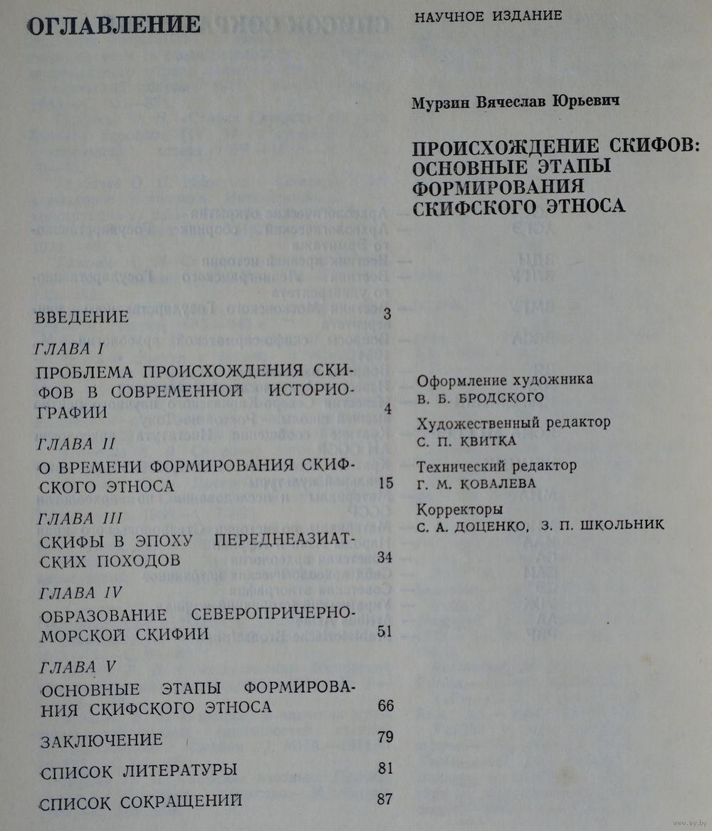 Большой энциклопедический формат. Тираж 3000 экз. В монографии исследуется один из наиболее дискуссионных вопросов современного скифоведения - проблема происхождения скифов. В ней автор приходит к выводу, что основные особенности процесса этногенеза скифов обусловлены взаимодействием местных и пришлых этнических элементов. В этой связи предпринята попытка определить начальную и заключительную стадии процесса формирования скифского этноса во времени, выясняются основные этапы сложения скифов как конкретного исторического этноса. Вопросы рассматриваются на широком фоне ранней истории скифов, реконструкции важнейших звеньев которой посвящена значительная часть книги.