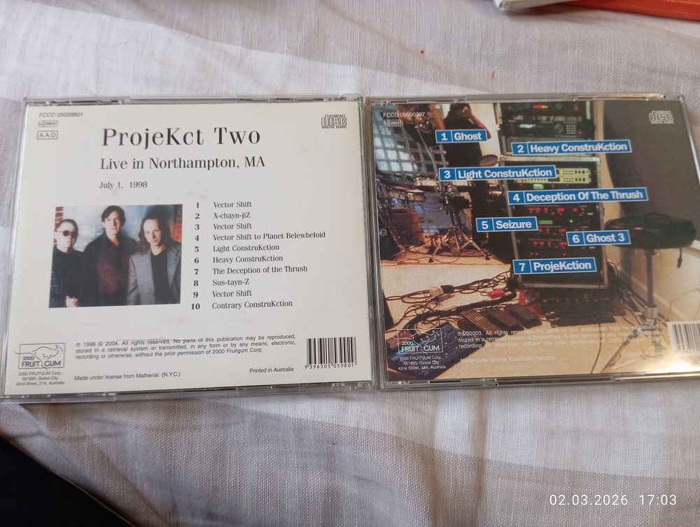 ProjeKct Two, Four+ King Crimson) live 1998. CD. Редкие. В хорошем состоянии. Без царапин. Из King Crimson collectors club CDs. По 16 р каждый. Bootleg Russia. Буклет. Возможность отправки Белпочтой, полная предоплата на карту Беларусбанк. Без торга