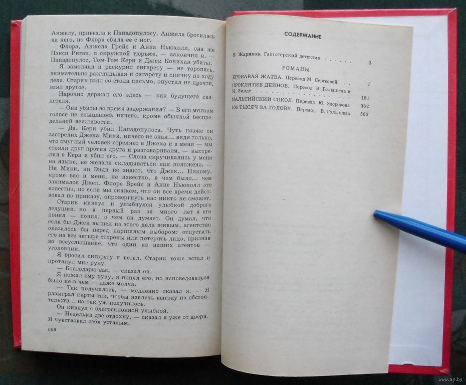В этот том серии "Гангстерский детектив" включены три романа Дэшила Хэммета (1894-1961), родоначальника американского "крутого", или "гангстерского" детектива. Это "Кровавая жатва" (1929), "Проклятие Дейнов" (1929) и "Мальтийский сокол" (1930).