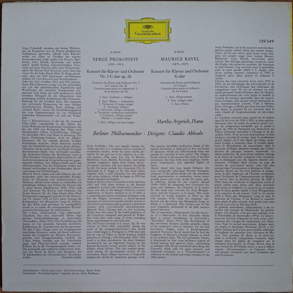 Prokofieff / Ravel - Martha Argerich, Berliner Philharmoniker, Claudio Abbado – Klavierkonzert Nr. 3 C-Dur / Klavierkonzert G-Dur