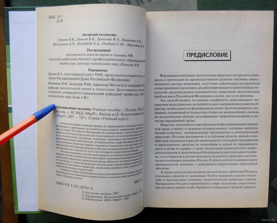 В книге на основе новейших данных и с привлечением большого числа отечественных и зарубежных источников рассмотрено современное экологическое состояние Российской Федерации во взаимосвязи с вовлечением ее в мировое экологическое пространство и вытекающей из этого необходимостью учета ее национальных интересов; освещены санитарно-экологические аспекты производственной деятельности, ее взаимосвязь с перспективами экологически устойчивого развития страны; показаны возможные последствия негативного воздействия промышленности России на окружающую среду, если она будет развиваться и дальше по пути экстенсивного природопользования. Большое внимание уделено мониторингу и методам прогнозирования проявления опасных экологических факторов; основным инженерно-техническим мерам предотвращения загрязнения среды обитания человека и нормализации ее состояния, а также ликвидации последствий чрезвычайных ситуаций природного и техногенного характера, снижению ущерба от них: указаны способы защиты населения и территорий. Учебное пособие предназначено для студентов высших учебных заведений, обучающихся по инженерно-техническим и сельскохозяйственным направлениям и специальностям.