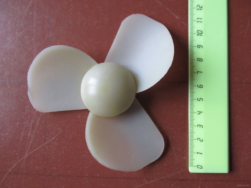 Полиэтилен. От центра до края лопасти - 6,5 см. Посадочный диаметр на ось- 2 мм. В умелые руки - для моделирования, творчества.
