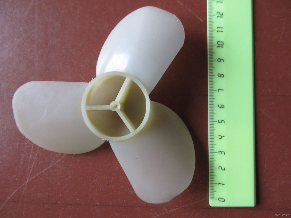 Полиэтилен. От центра до края лопасти - 6,5 см. Посадочный диаметр на ось- 2 мм. В умелые руки - для моделирования, творчества.