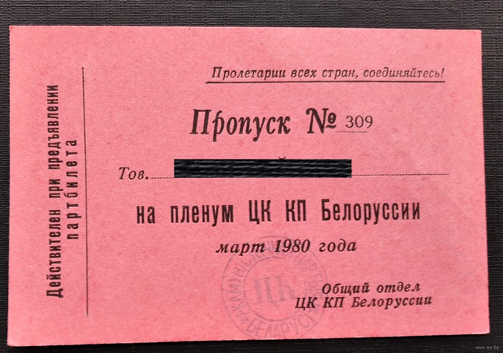Пропуск на заседания Пленума ЦК КПБ. Минск. Март 1980 г.
