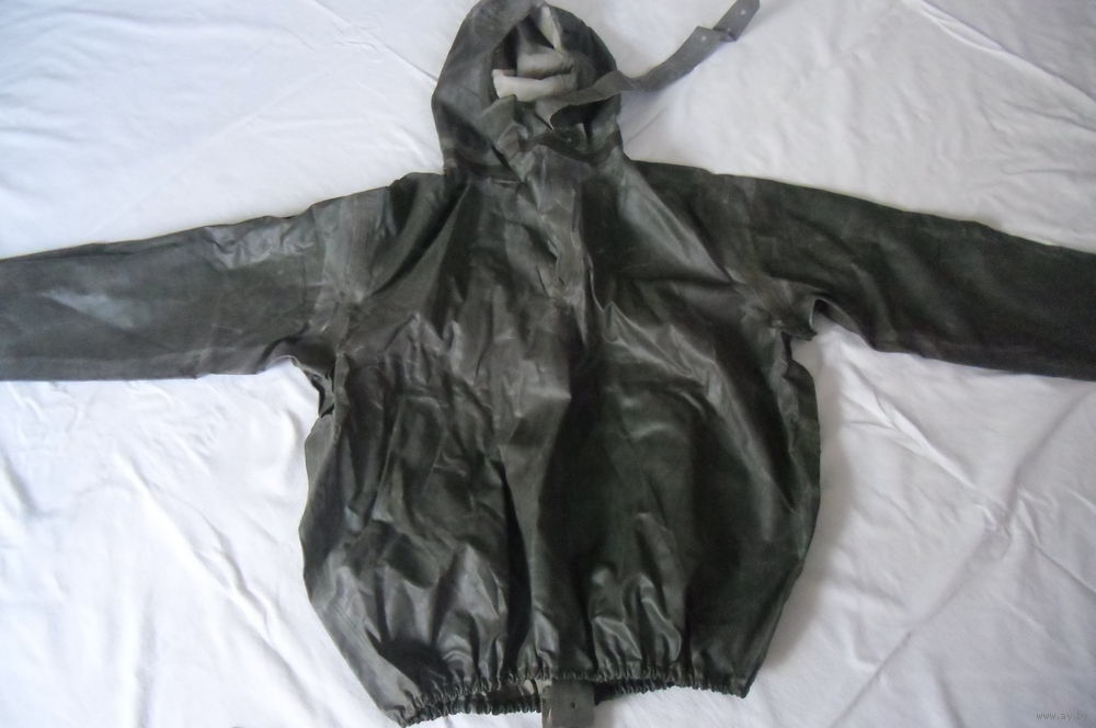 (8616-25) Прорезиненная куртка костюма Л1, ВС СССР. Не ношена, сохранность хорошая. Длина куртки по спинке - 70 см, плечо - 17 см, длина рукава 63 см, объем груди - 130 см.
