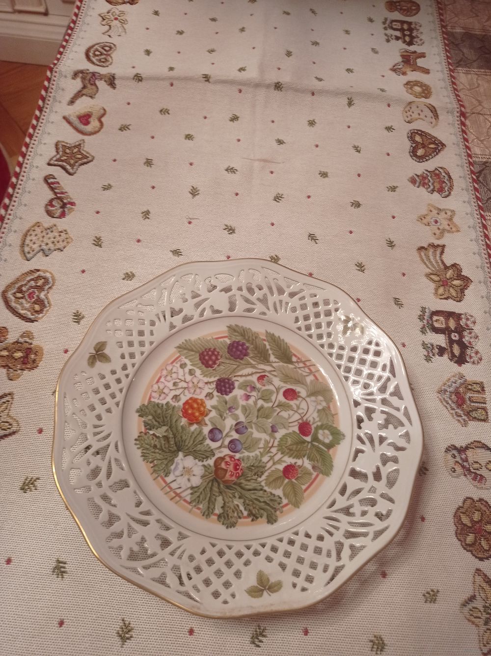 Большая тарелка или блюдо из прорезного фарфора. Диаметр 26 см.