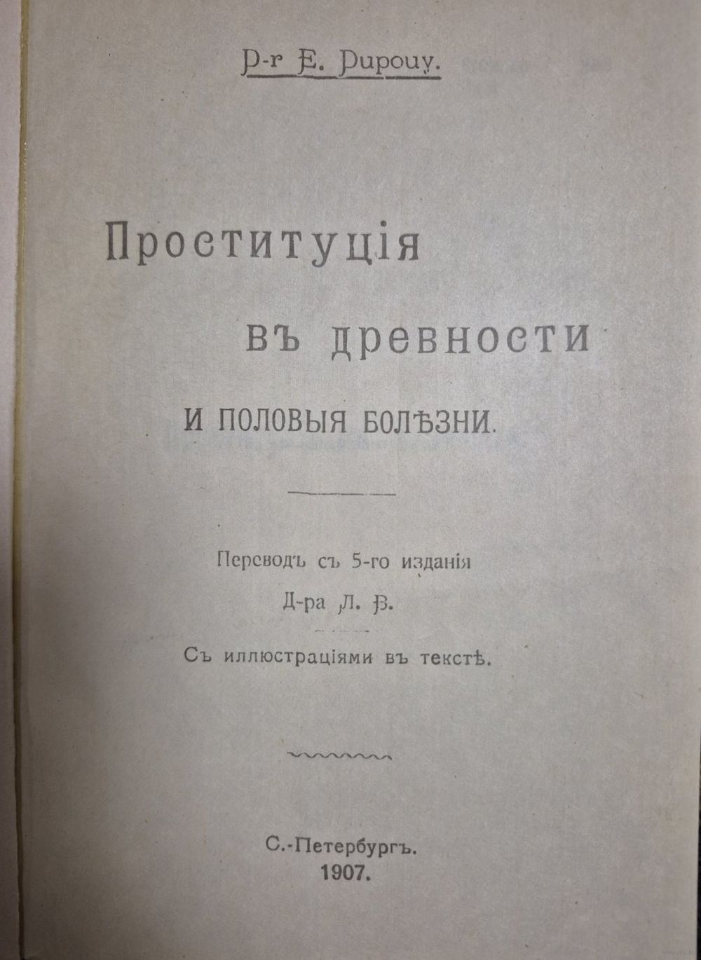 4. . Проституция в древности и половые болезни. Дюпуи Эдмонд. Репринтное воспроизведение издания. 1907 г. 326 стр. Комплексный кооператив "Рось", 1990 год