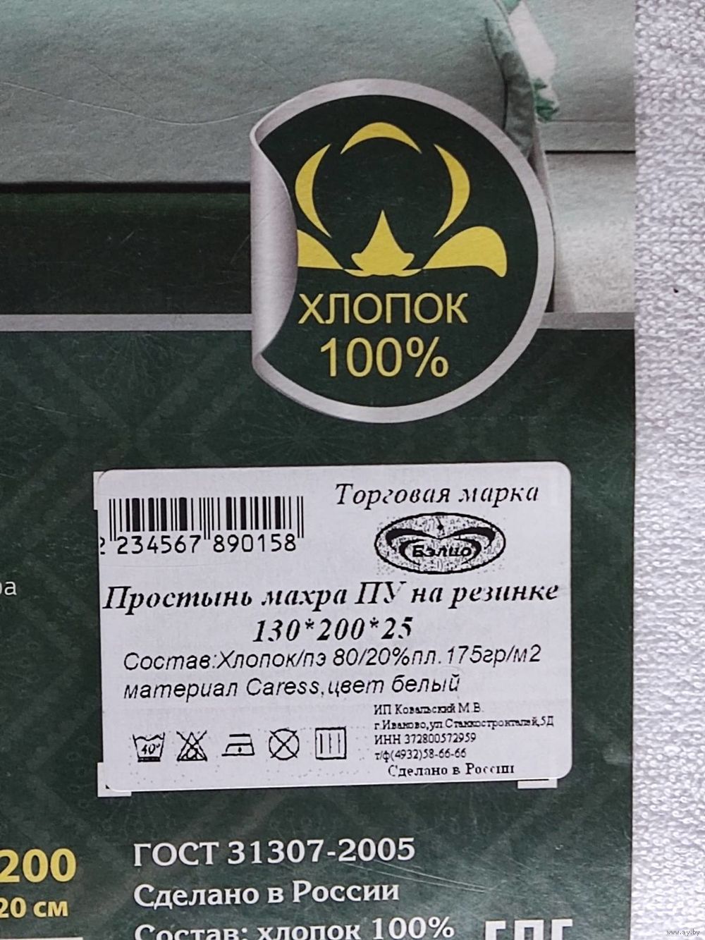 Простыня на резинке, махровая ткань с мембраной, хлопок 80%, полиэстер 20%, непромокаемая. 150x200х25 см. Очень хорошо подходит для лежачих больных.