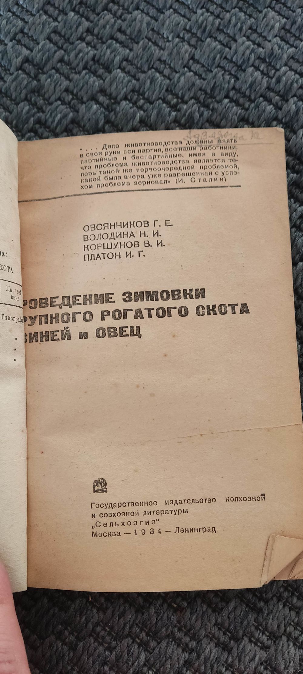 Проведение зимовки крупного рогатого скота, свиней и овец 1934 год.