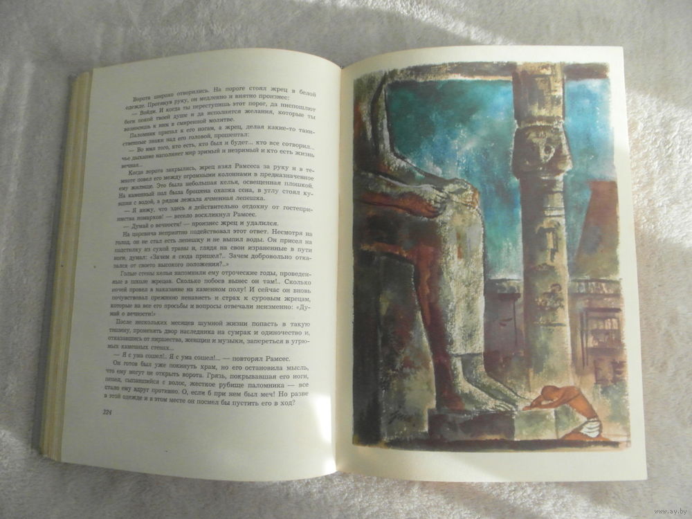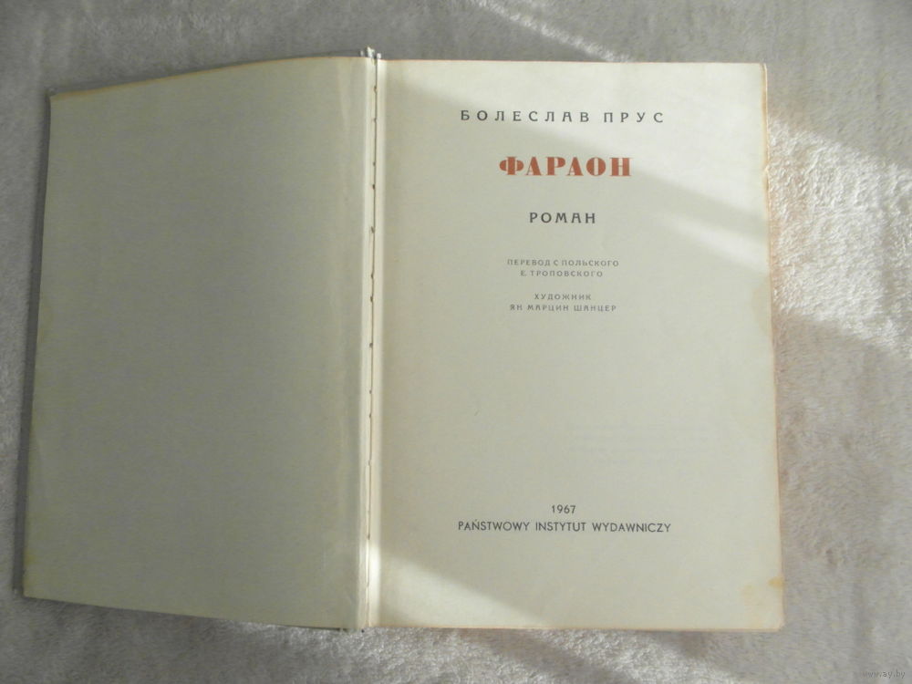 Издание по тексту Б.Прус-Фараон.Гослитиздат.М.1963. «Фараон» — исторический роман известного польского писателя Болеслава Пруса (1847—1912) из жизни Древнего Египта, в котором затрагиваются многие важные проблемы: тяжелое положение народа, роль народа в жизни государства. Сюжет романа составляет история борьбы вымышленного исторического деятеля — молодого фараона Рамсеса XII с могущественной кастой жрецов. Содержащаяся в этом произведении критика религии и духовенства была актуальна для католической Польши.Черно-белые иллюстрации в тексте и цветные на отдельных вклейках.