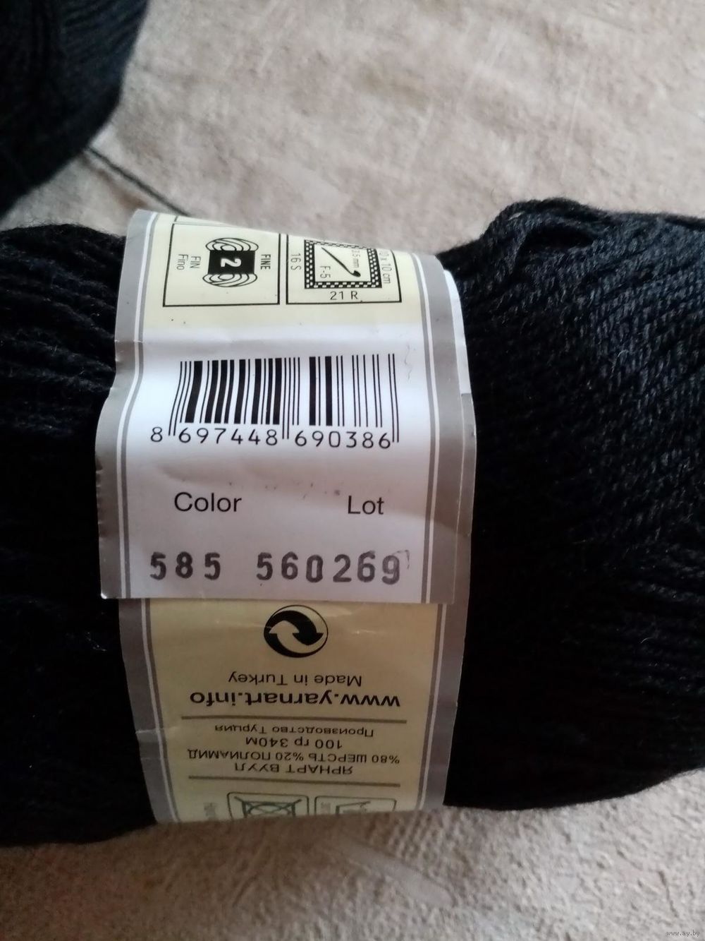 | Пряжа полушерсть 195 г YarnArt чёрная, шерсть/полиамид 80/20 340 м на 100 г | |