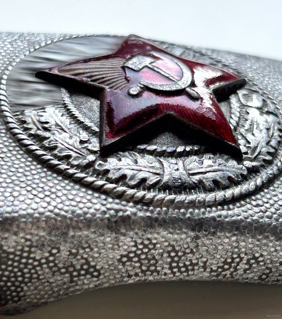 Пряжка-партизанка. Поверх символики Вермахт, установлена кокарда-красная звезда.