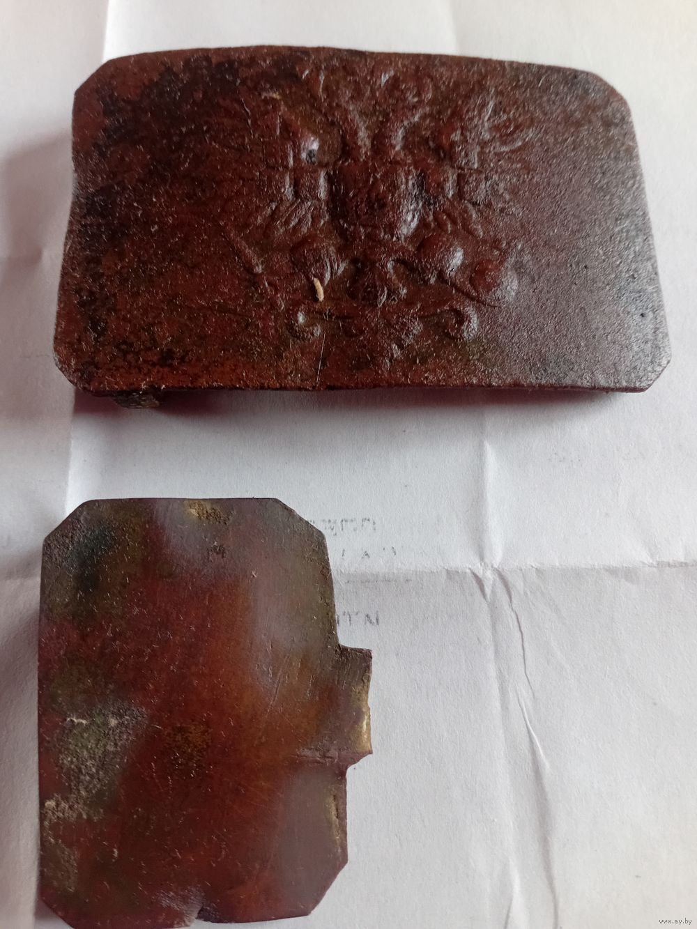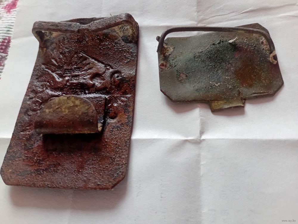 На фото целая пряжка, не чистил, только помыл. Вторая не знаю от какого ремня, лежал рядом. Цена за все