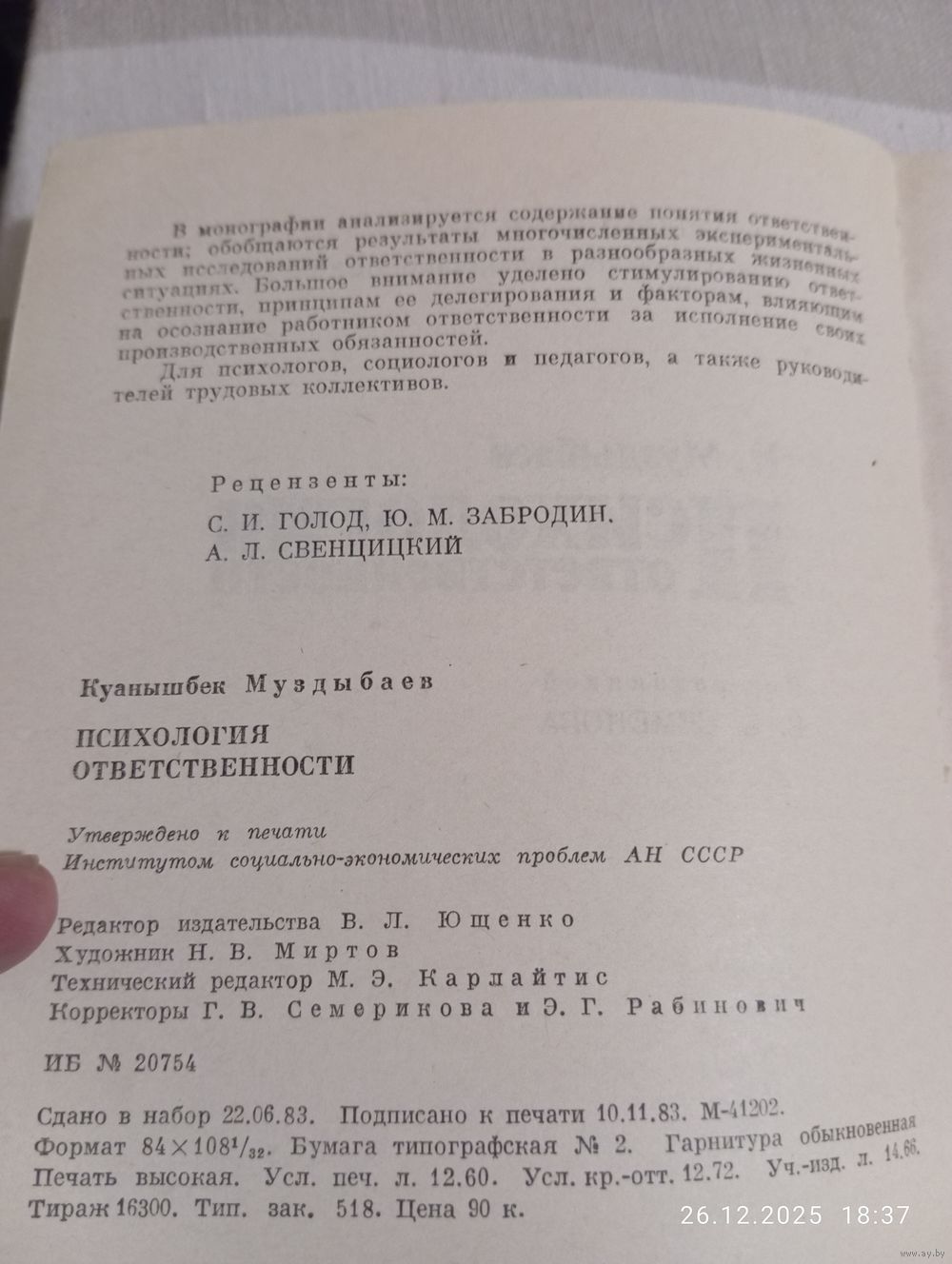 Психология ответственности. Муздыбаев К. Наука 1983. В хорошем состоянии, мягкая обложка. 240 с. Возможность отправки Белпочтой, полная предоплата