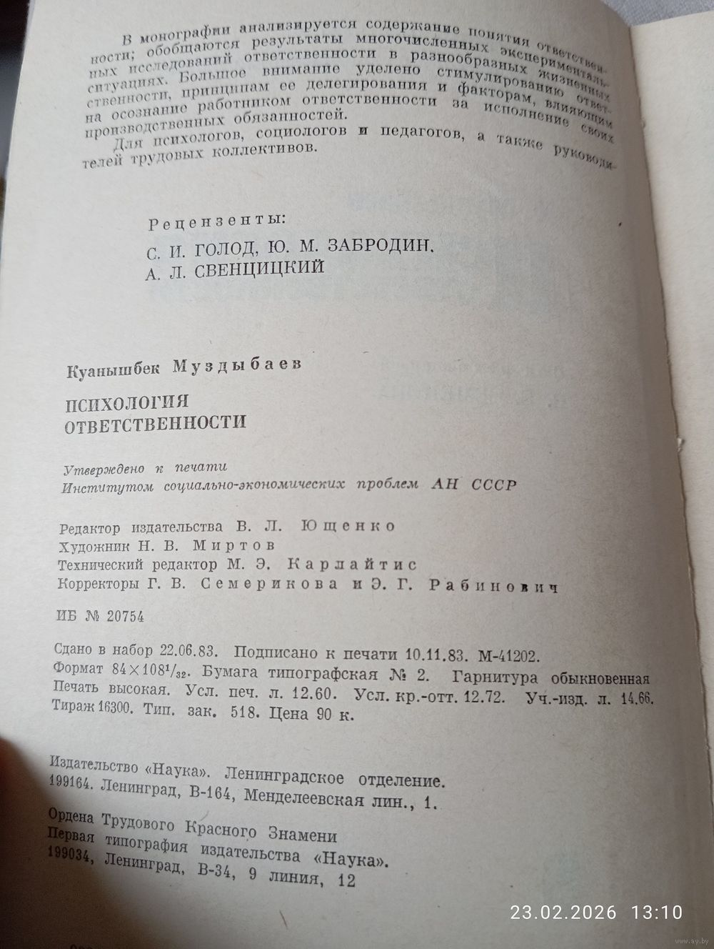 Психология ответственности. Муздыбаев К. Наука 1983. В хорошем состоянии, мягкая обложка. 240 с. Возможность отправки Белпочтой, полная предоплата