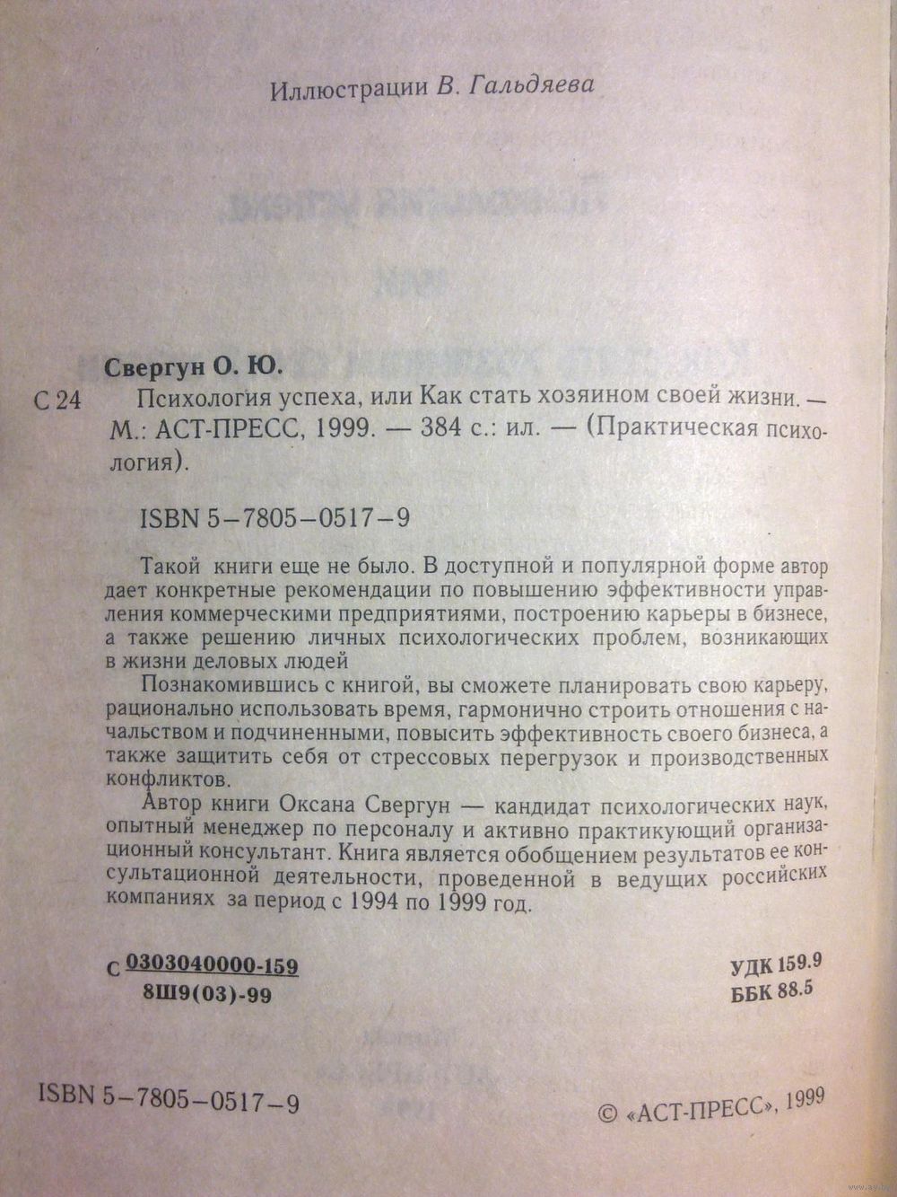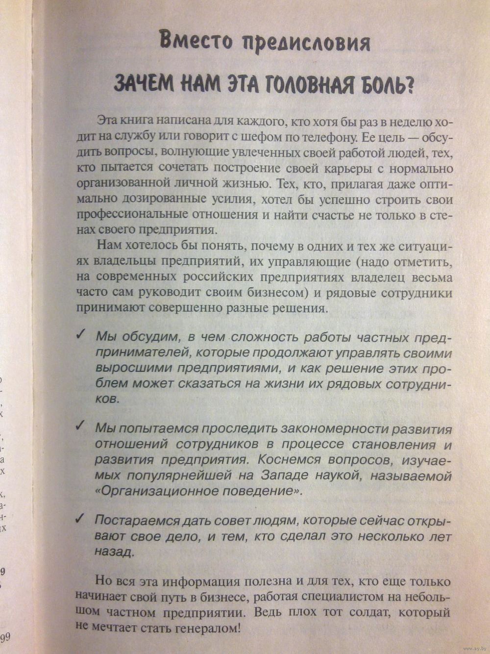 Такой книги еще не было. В доступной и популярной форме автор дает конкретные рекомендации по повышению эффективности управления коммерческими предприятиями, построению карьеры в бизнесе, а также решению личных психологических проблем, возникающих в жизни деловых людей. Познакомившись с книгой, вы сможете планировать свою карьеру, рационально использовать время, гармонично строить отношения с начальством и подчиненными, повысить эффективность своего бизнеса, а также защитить себя от стрессовых перегрузок и производственных конфликтов. Автор книги Оксана Свергун - кандидат психологических наук, опытный менеджер по персоналу и активно практикующий организационный консультант. Книга является обобщением результатов ее консультационной деятельности, проведенной в ведущих российских компаниях за период с 1994 по 1999 год.