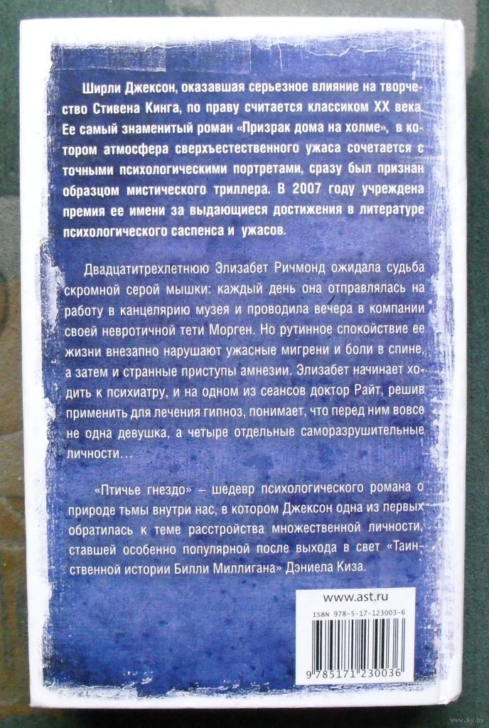«Птичье гнездо» — шедевр психологического романа о природе тьмы внутри нас, в котором Джексон одна из первых обратилась к теме расстройства множественной личности, ставшей особенно популярной после выхода в свет «Таинственной истории Билли Миллигана» Дэниела Киза.