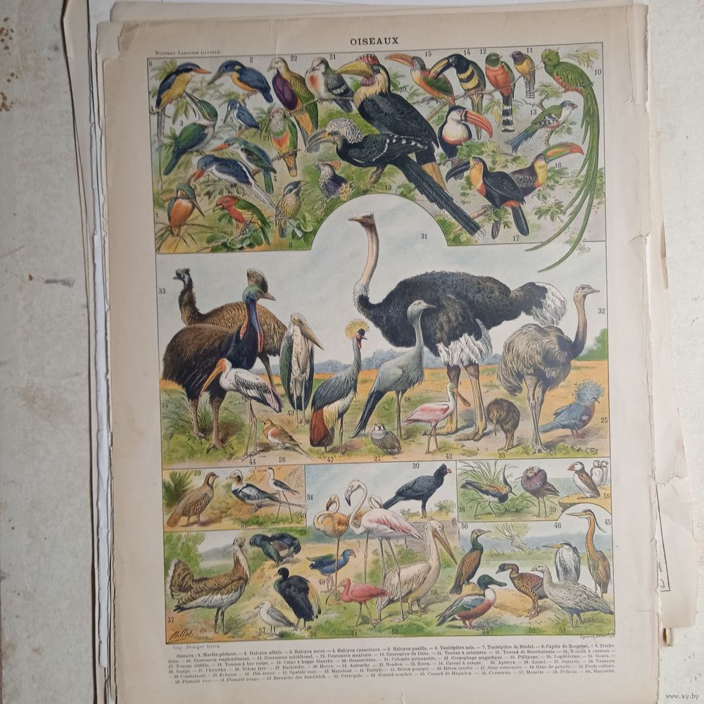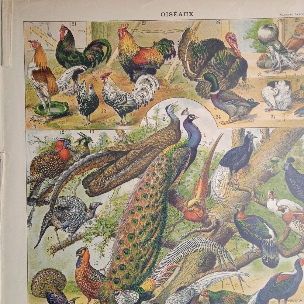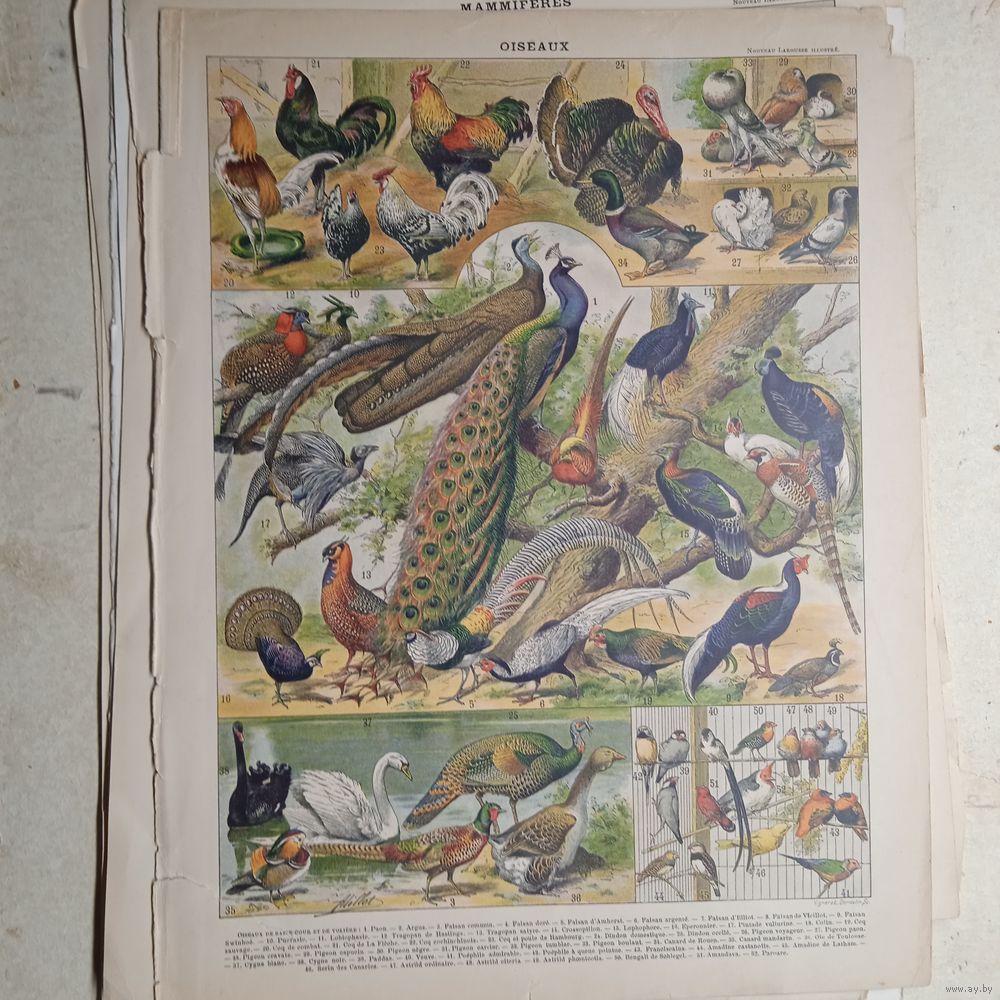 ПТИЦЫ. Энциклопедическая гравюра .OISEAUX 2. Франция кон.19в.31х24см.