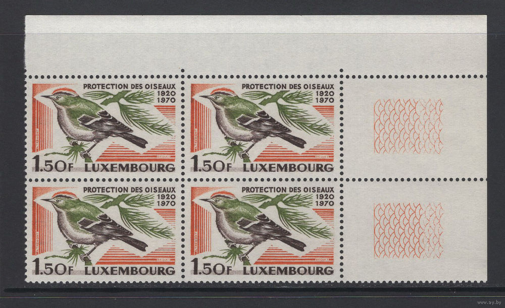 Птицы Люксембург 1970** Певчая птица Желтоголовый королёк квартблок Mi#806
