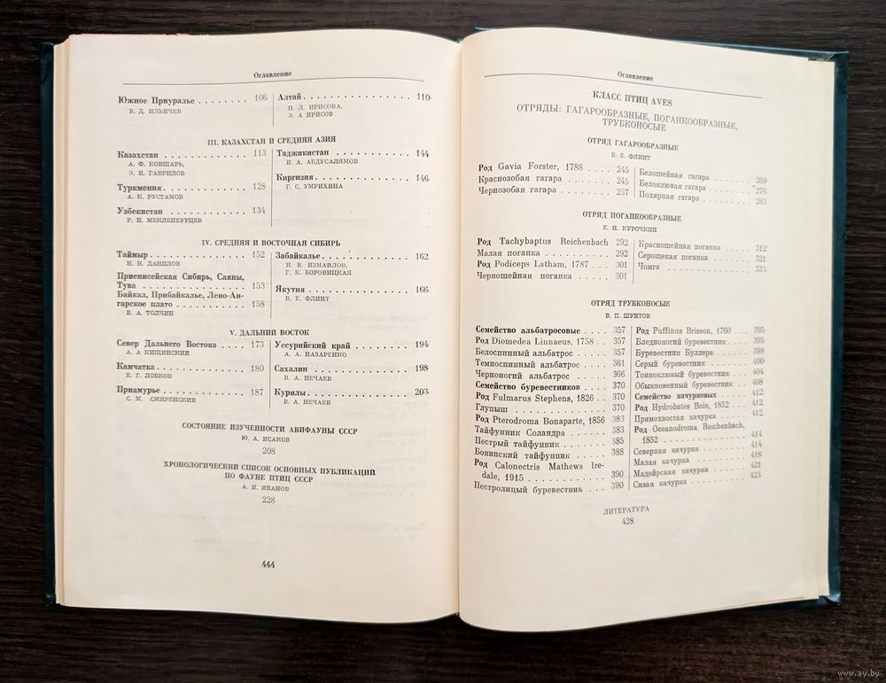 Серия книг «Птицы СССР» рассказывает об образе жизни всех птиц, населяющих территорию Советского Союза от тундр до пустынь, от Прибалтики и Карпат до Чукотки, Сахалина и Курил. В очерках, посвященных отдельным видам, приведены современные сведения о распространении, местах обитания, сроках и путях миграции, способах гнездования, питании и роли птиц в экосистемах. В первой книге серии изложена история изучения птиц нашей страны и приведены очерки образа жизни гагар, поганок, альбатросов и буревестников.