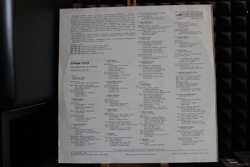 Птицы СССР - Воробьиные: Дрозды (1987, Vinyl)