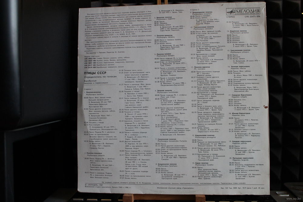 Птицы СССР - Воробьиные: Пеночки И Пересмешники (1987, Vinyl)