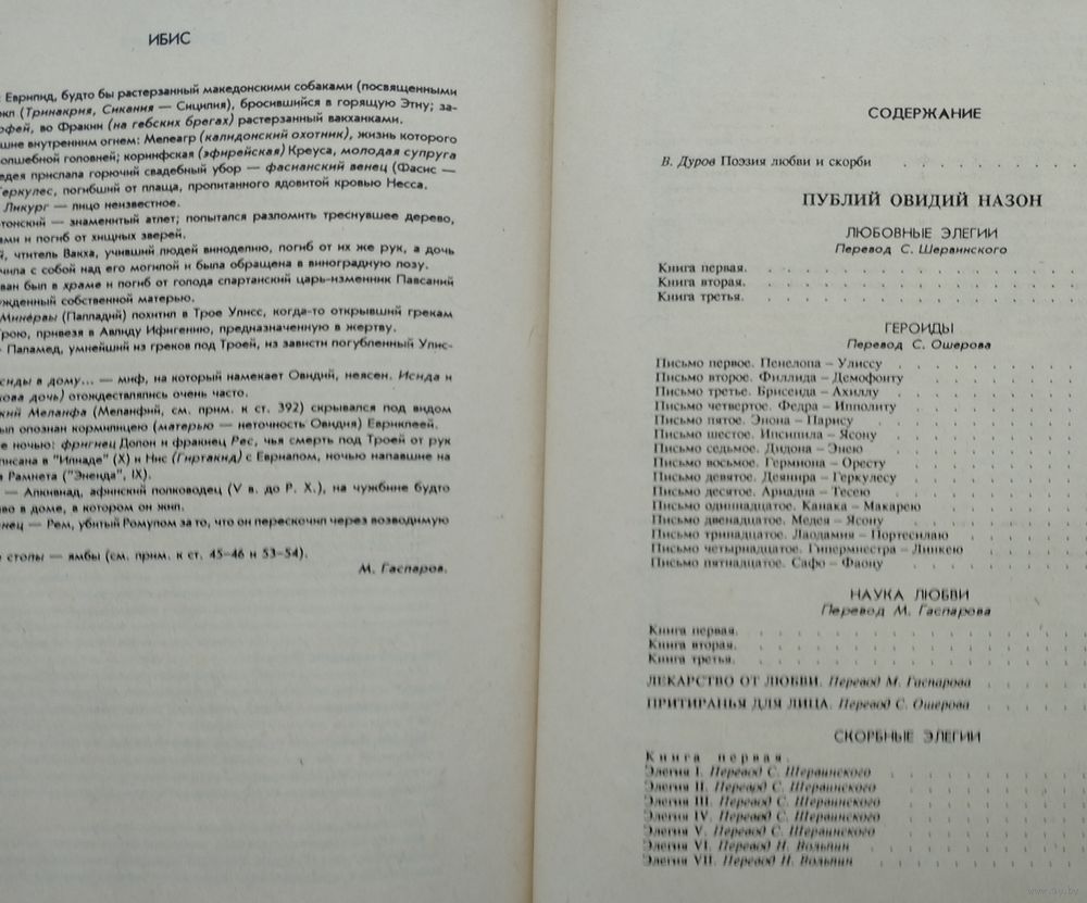 Большой энциклопедический формат. Тираж 30000 экз. 512 стр. Настоящее собрание сочинений знаменитого римского поэта Публия Овидия Назона выходит в двух томах, является самым полным изданием сочинений Овидия на русском языке и продолжает серию "Библиотека Античной Поэзии". В первый том вошли: "Любовные элегии", "Героиды", "Наука любви", "Скорбные элегии", "Письма с Понта" и "Ибис". Вступительная статья "Поэзия любви и скорби" В. Дурова, примечания С. Ошерова и М. Гаспарова. Перевод С. Шервинского, С. Ошерова, М. Гаспарова, Н. Вольпин, А. Парина и З. Морозкиной.