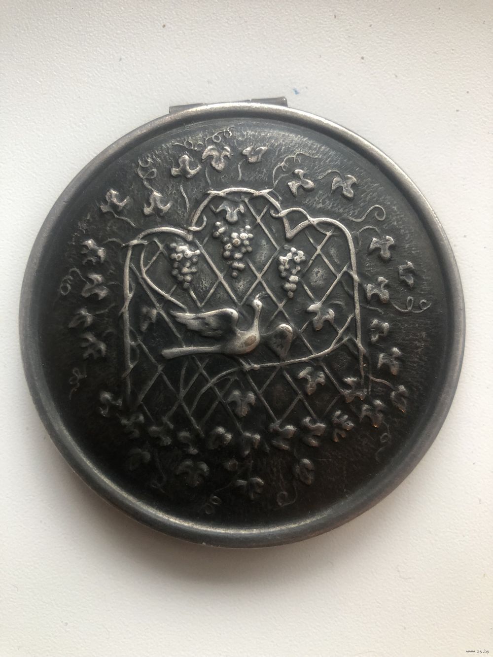 Пудреница металл, зеркало. СССР. Винтаж. Патина. Без вмятин. Защёлка замок работает плотно. Состояние на фото. Дополнительные фото по запросу.
