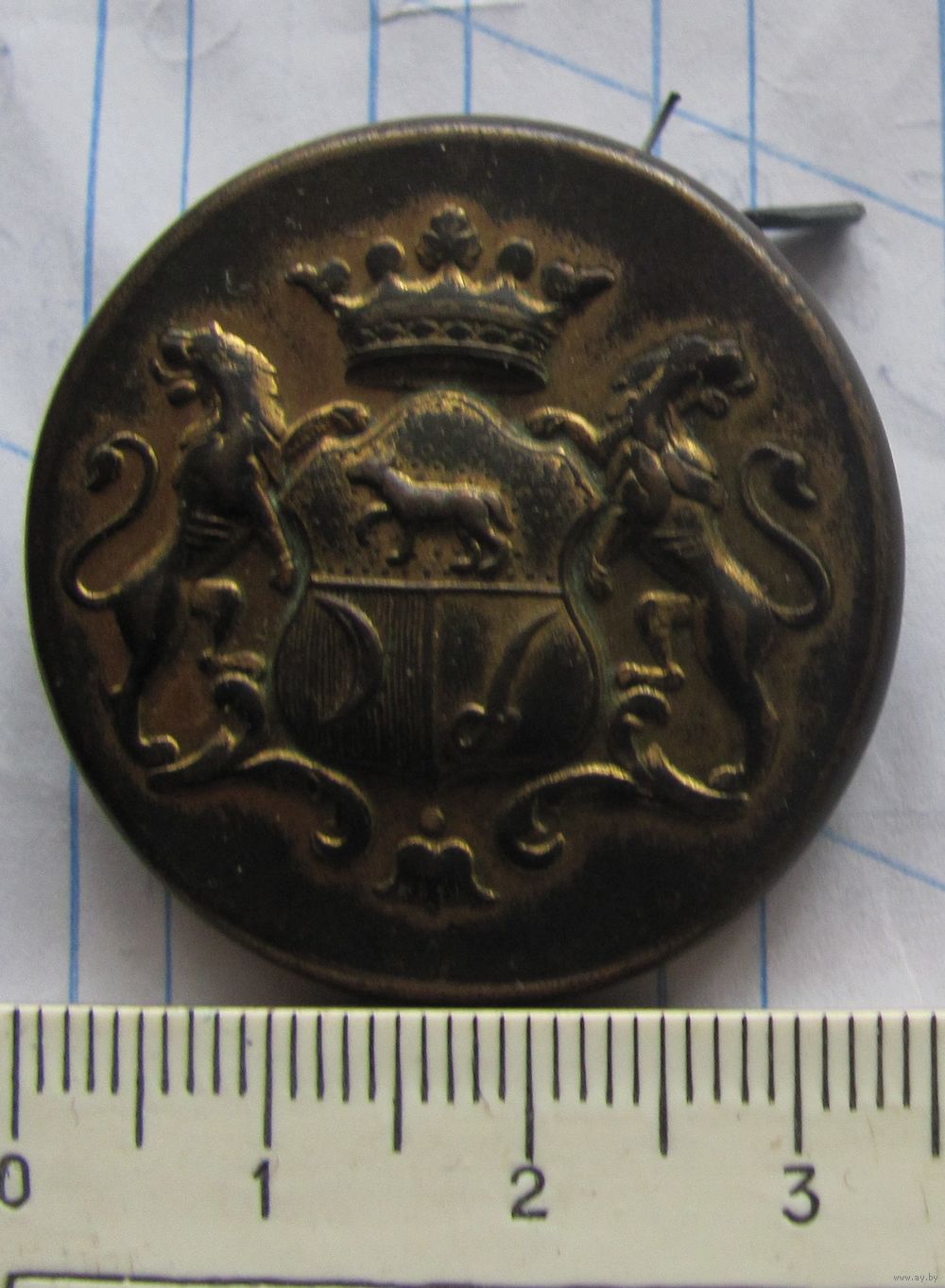 Пуговица дворянского рода Времевы большая плоская в позолоте