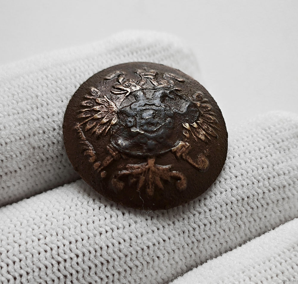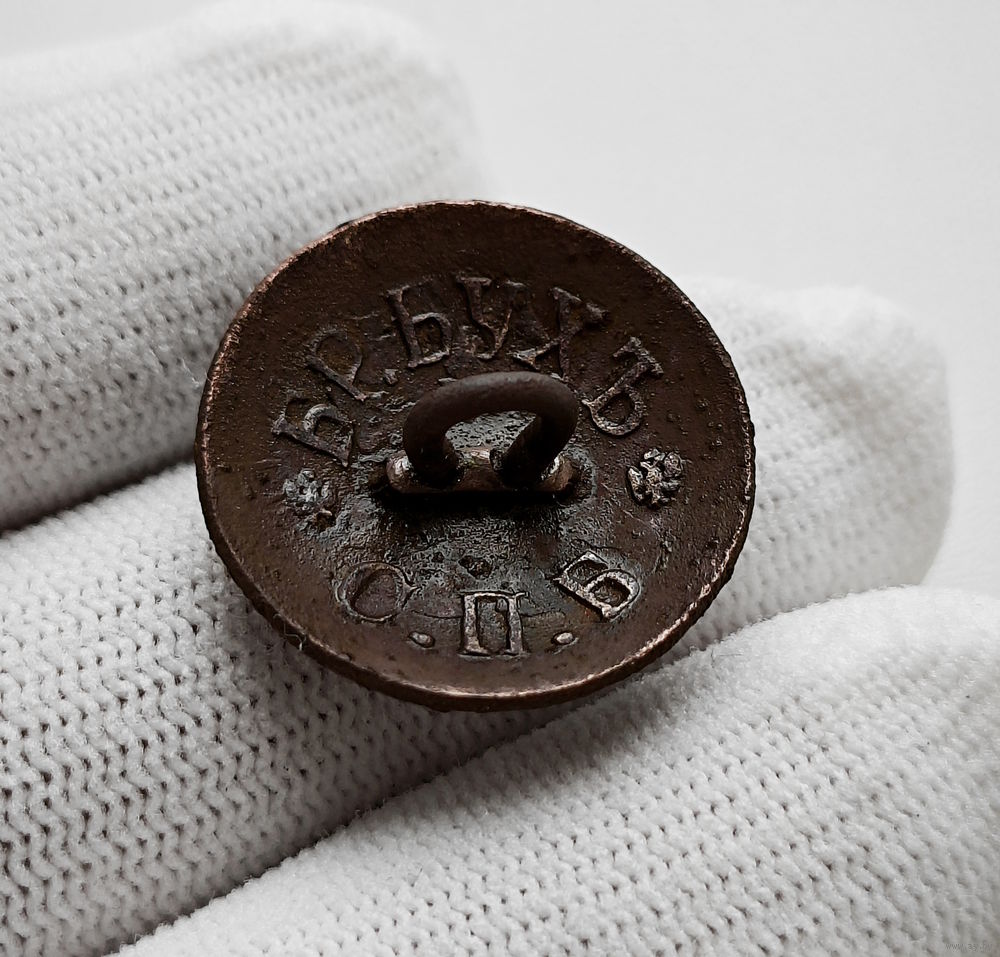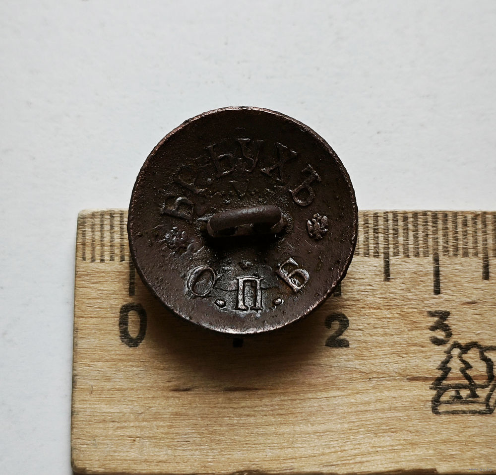 Эта мундирная пуговица Российской императорской армии изготовлена на пуговичной фабрике братьев Бух в Петербурге.