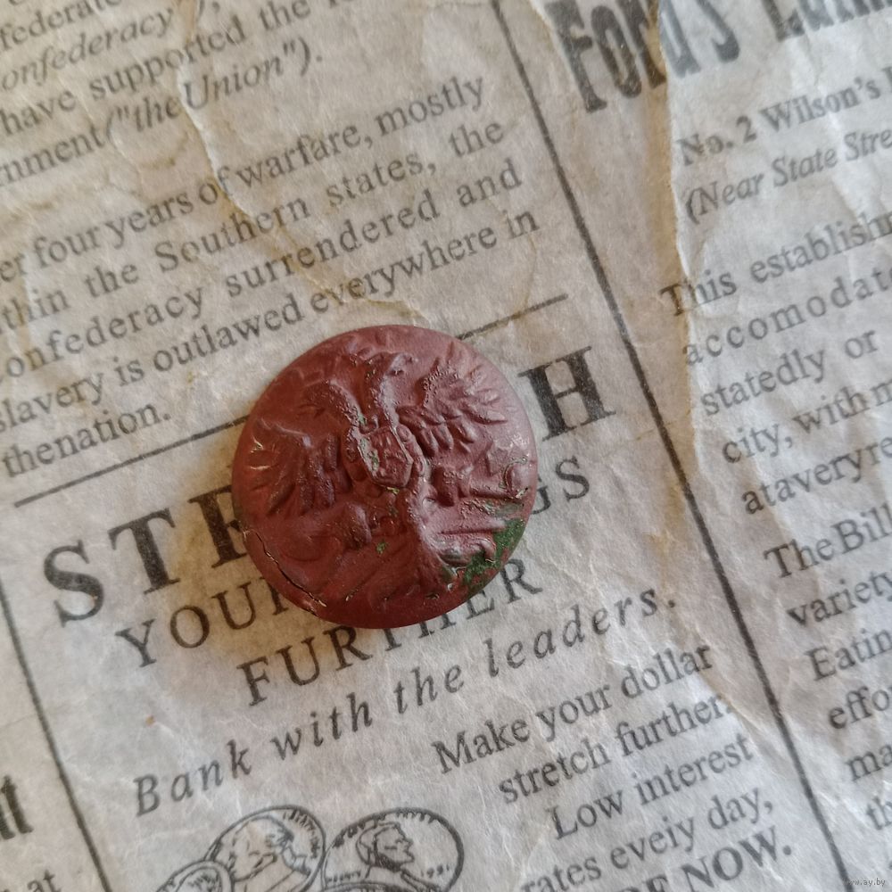 Пуговица РИА орёл на топарах с высоким рельефом нечищенная