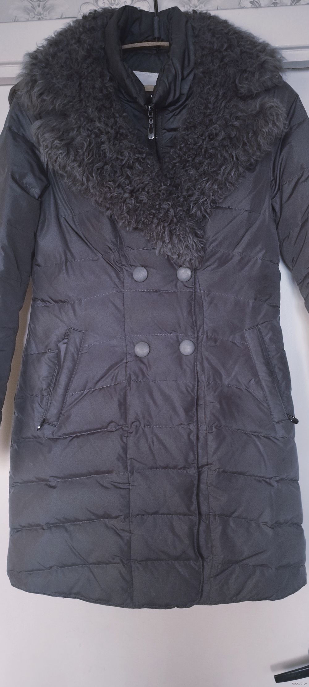 Пуховик женский серо-фиолетового цвета в нормальном состоянии, пух-перо, без химчистки, размер до 44. Ориентировочные мерки на фото. Есть капюшон, ремень. Продаю так как стал мал. Цена 40 рублей