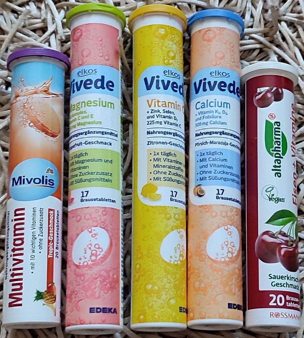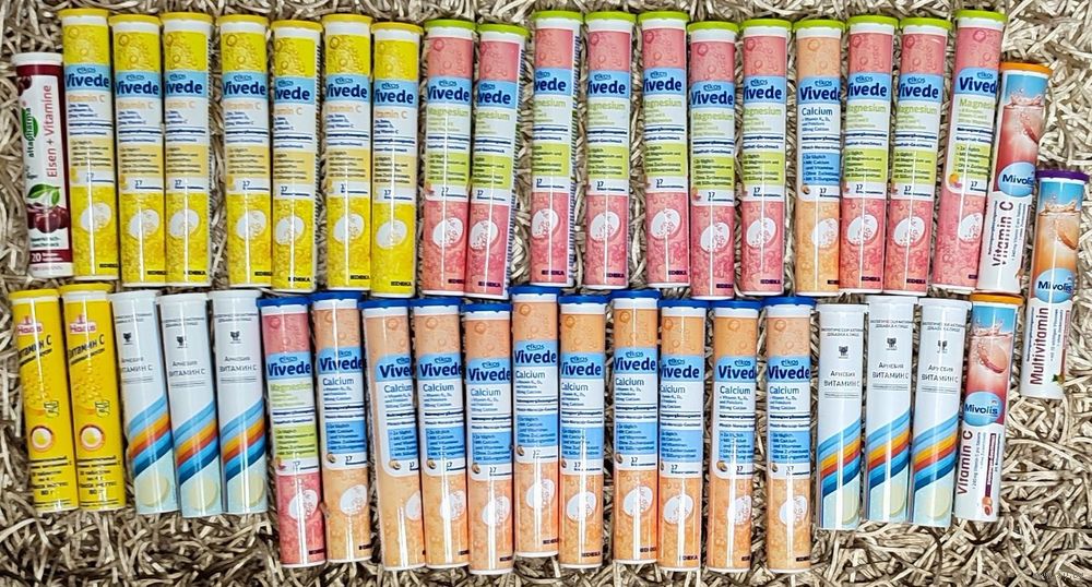 Пустые тубы от шипучих витаминок разных размеров, общим количеством 42шт (на фото меньше)