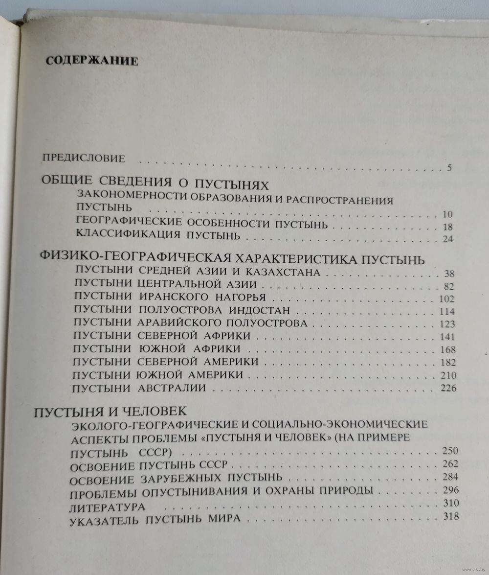 В книге приводятся общие сведения о пустынях земного шара – закономерностях их образования и географического распространения, особенностях природы, их классификации. Даётся также физико-географическая характеристика различных пустынь мира по континентам и отдельным регионам. Цель книги – дать читателю общее представление о пустынях, а также конкретные сведения о природе разных пустынь – равнинных и горных, жарких и холодных. Показаны среда обитания живых организмов, формы и типы природопользования, ресурсы пустынь и роль НТР в их освоении, даётся анализ социальных, экономических и природоохранных проблем, методов и практики их решения. Большое внимание уделено хозяйственному освоению пустынь и проблеме "пустыня и человек"– современному антропогенному воздействию на пустыни, процессам опустынивания и охране их природы. Многочисленные цветные иллюстрации, карты, схемы, графики. Обширная библиография. Указатель пустынь мира.