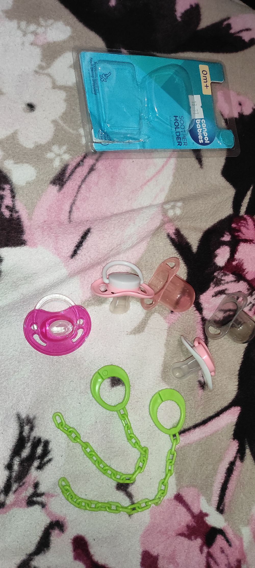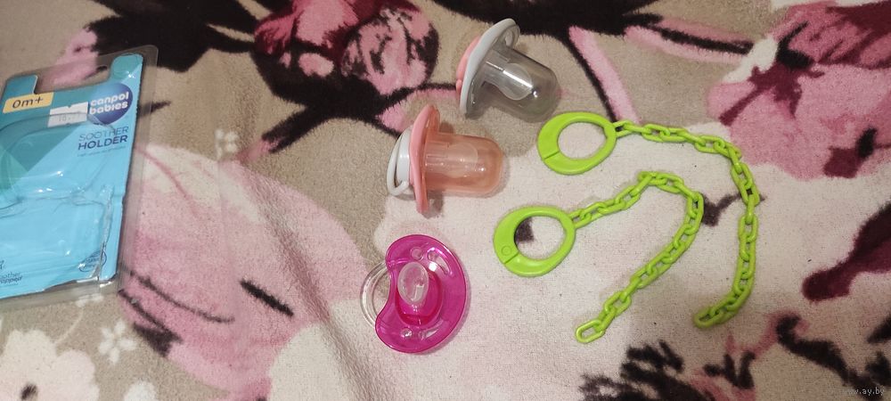 Пустышки силиконовые 0+ 3 шт. и 2 цепочки вместе