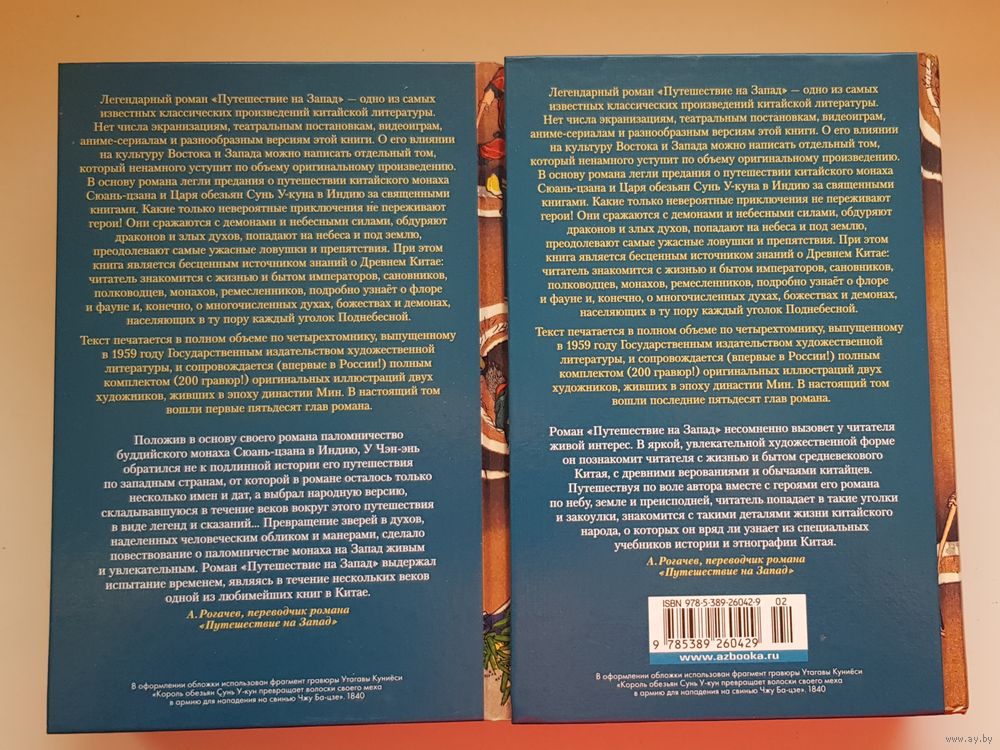 Легендарный роман «Путешествие на Запад» — одно из самых известных классических произведений китайской литературы. Нет числа экранизациям, театральным постановкам, видеоиграм, аниме-сериалам и разнообразным версиям этой книги. О его влиянии на культуру Востока и Запада можно написать отдельный том, который ненамного уступит по объему оригинальному произведению. В основу романа легли предания о путешествии китайского монаха Сюань-цзана и Царя обезьян Сунь У-куна в Индию за священными книгами. Какие только невероятные приключения не переживают герои! Они сражаются с демонами и небесными силами, обдуряют драконов и злых духов, попадают на небеса и под землю, преодолевают самые ужасные ловушки и препятствия. При этом книга является бесценным источником знаний о Древнем Китае: читатель знакомится с жизнью и бытом императоров, сановников, полководцев, монахов, ремесленников, подробно узнаёт о флоре и фауне и, конечно, о многочисленных духах, божествах и демонах, населявших в ту пору каждый уголок Поднебесной. Текст печатается в полном объеме по четырехтомнику, выпущенному в1959 году Государственным издательством художественной литературы, и сопровождается (впервые в России!) полным комплектом (200 гравюр!) оригинальных иллюстраций двух художников, живших в эпоху династии Мин.