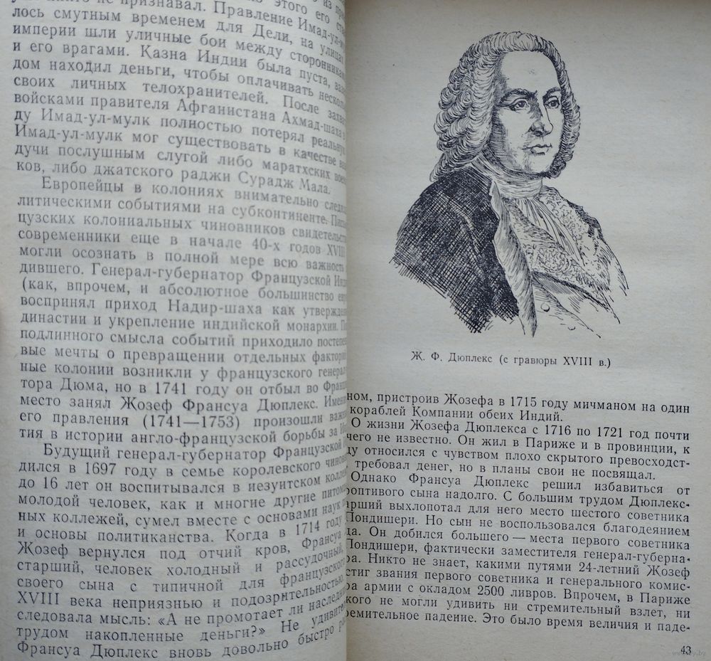 288 стр. Книга посвящена одному из важных периодов истории колониализма XVIII века — англо-французской борьбе за Индию, Автор рассказывает о кратковременных успехах французской колониальной политики в Индии и о ее крахе, показывает, что, несмотря на способности отдельных представителей французской колониальной администрации, французская абсолютная монархия а борьбе с буржуазной Англией была обречена на поражение. Исторический материал изложен в форме биографий политических деятелей. Заключает книгу глава о французском путешественнике В. Жакмоне, «Письма из Индии» (1829–1832 гг.) которою неоднократно издавались во Франции, но почти неизвестны советскому читателю.