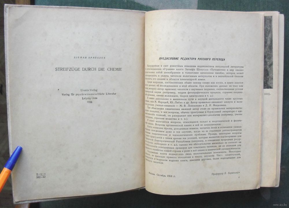 Выпущенная в свет известным немецким издательством популярной литературы по естествознанию «Урания» книга Зигмара Шпаусуса «Путешествие в мир химии» представляет собой своеобразное и талантливо написанное пособие, которое может заинтересовать и увлечь читателя излагаемым материалом и в значительной степени пополнить его знания в области элементарной химии.